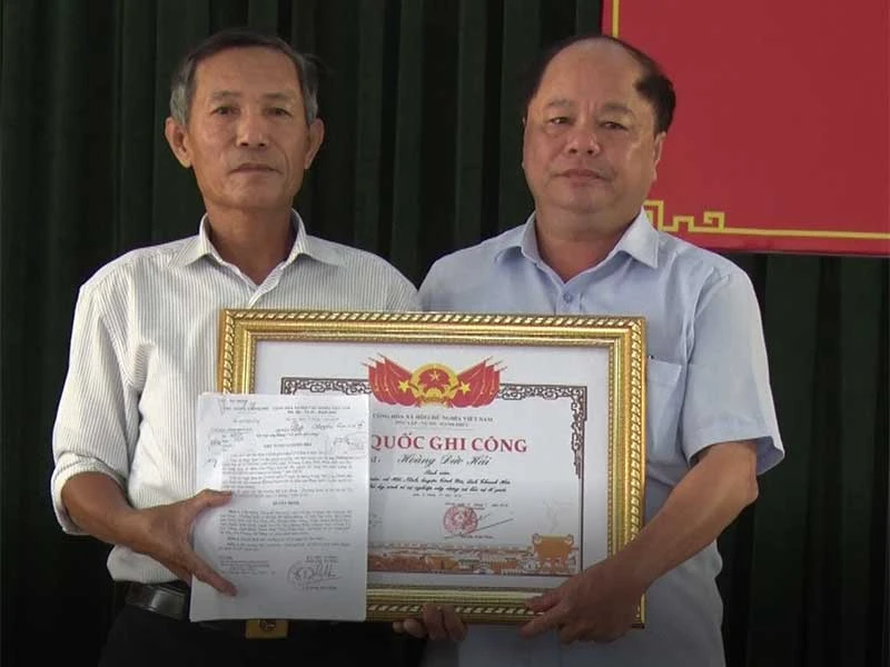 Sáng 27-9, tại hội trường UBND xã Hải Ninh (huyện Tĩnh Gia, Thanh Hóa), UBND huyện Tĩnh Gia đã phối hợp với chính quyền xã Hải Ninh long trọng tổ chức lễ trao bằng Tổ quốc ghi công cho thân nhân liệt sĩ Hoàng Đức Hải, người đã hy sinh khi cứu ba mẹ con đuối nước tại sông Ghép.