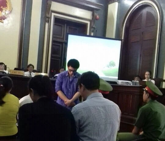 Gần cuối phiên xử, chủ tọa yêu cầu bị cáo B. quay xuống xin lỗi gia đình người bị hại. Lúc này B. tỏ ra ăn năn, hối hận về hành vi của mình gây ra.