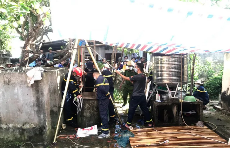 Đến khoảng 16 giờ chiều, hai cho con ông Nghiên đã được lực lượng chức năng đưa lên khỏi giếng.