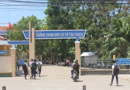 Trường THCS Tân Thạch nơi xảy ra vụ việc học sinh bóp cổ cô giáo