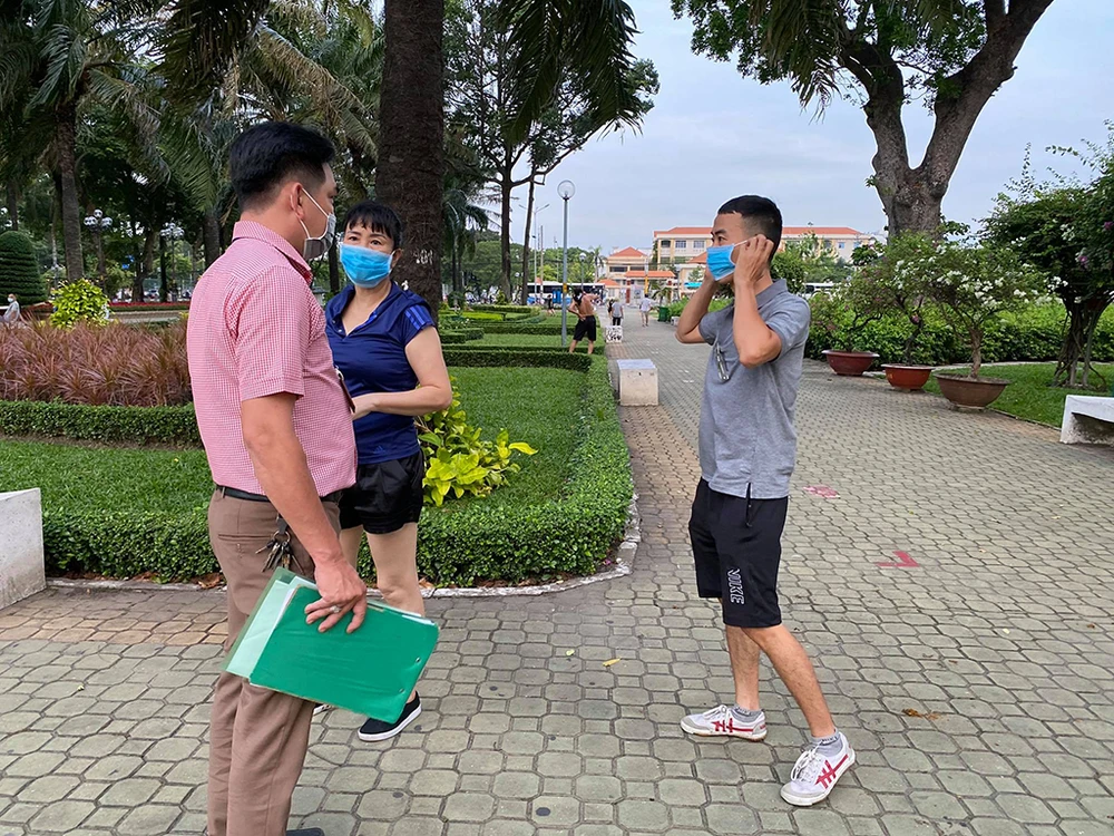 Một cán bộ UBND phường 9, quận Phú Nhuận), cho biết ngày 27-4, tổ công tác phường đã kiểm tra, phát loa thông báo và nhắc nhở người dân đeo khẩu trang phòng COVID-19 tại công viên Gia Định.