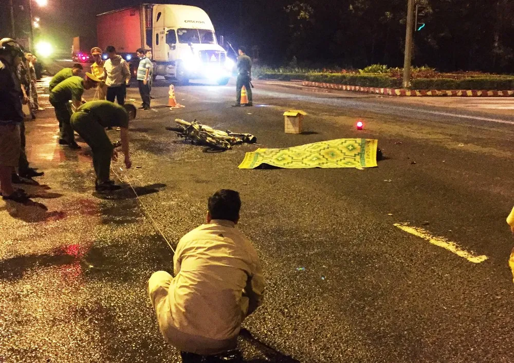 Lực lượng chức năng khám nghiệm hiện trường vụ tai nạn. Ảnh: CA