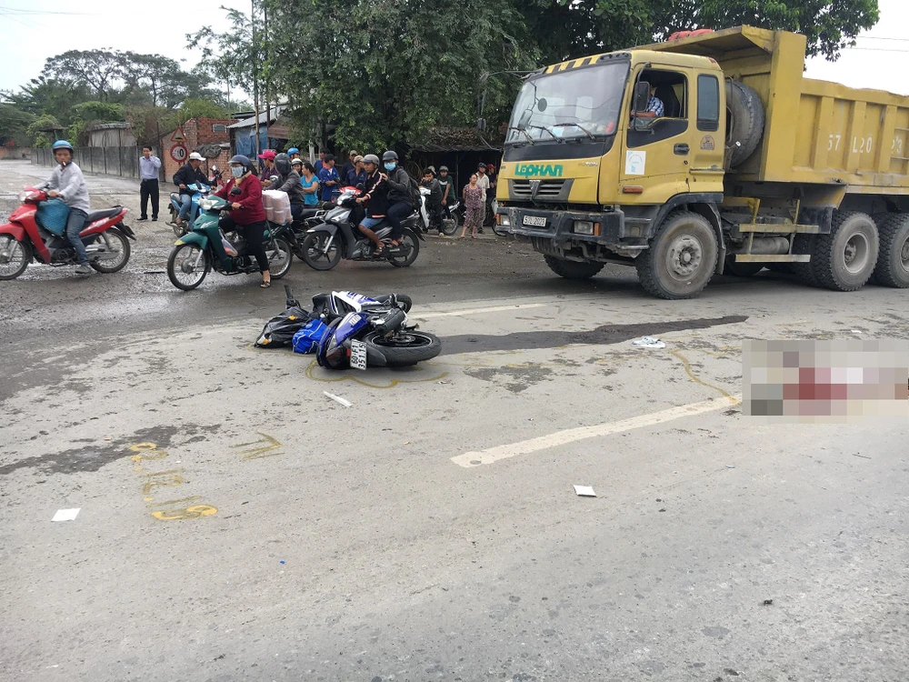 Khi H. đến đoạn thuộc phường Tân Đông Hiệp (thị xã Dĩ An, Bình Dương) thì xảy ra va chạm với xe ben chạy cùng chiều. Sau va chạm, nạn nhân ngã ra đường bị bánh xe chèn, không qua khỏi.