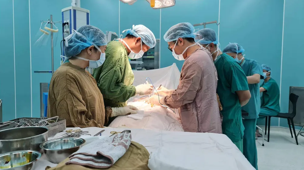Các bác sĩ Khoa Ngoại Tiết niệu BV Quân Y 175 đang khâu nối dương vật bị gãy cho nam thanh niên. Ảnh: BVCC