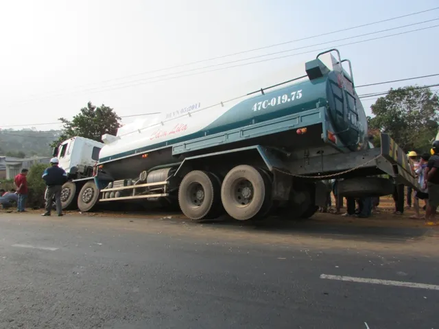 Cùng lúc này, xe bồn BKS 47C-019.79 do tài xế Nguyễn Tấn Tùng (trú huyện Krông Bông, Đắk Lắk) điều khiển chạy phía sau không kịp tránh đã cuốn cả người và xe máy vào gầm kéo lê gần 10m khiến nạn nhân chết tại chỗ, xe máy bị cán hư hỏng hoàn toàn.
