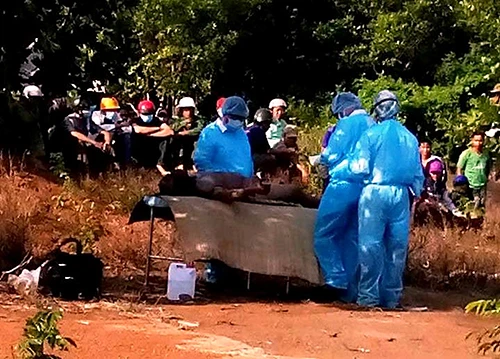 Cơ quan chức năng đang khám nghiệm tử thi. Ảnh: LQL