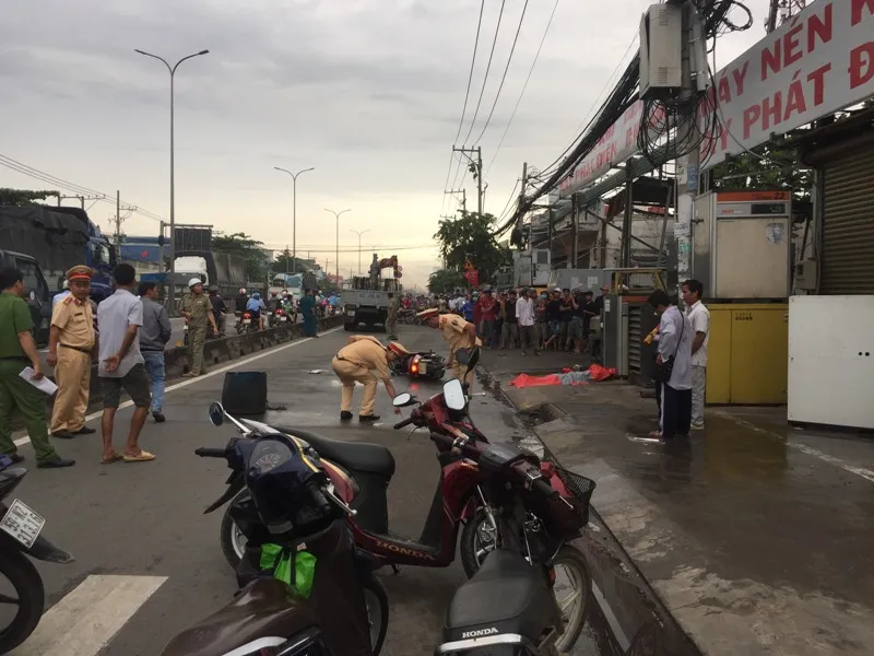 Hiện trường sau vụ tai nạn trên quốc lộ 1, quận Bình Tân, TP.HCM. Ảnh: NGỌC THẠCH