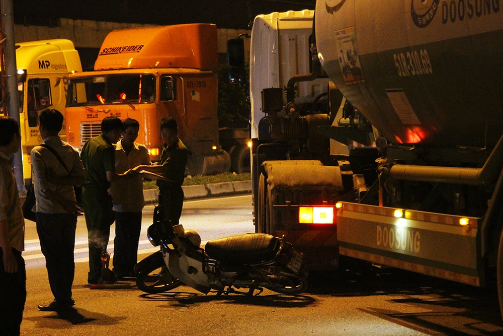 Cú va chạm làm nạn nhân ngã xuống đường và bị bánh trước bên trái xe bồn cán qua, tử vong. Riêng chiếc xe máy bị hư hỏng.