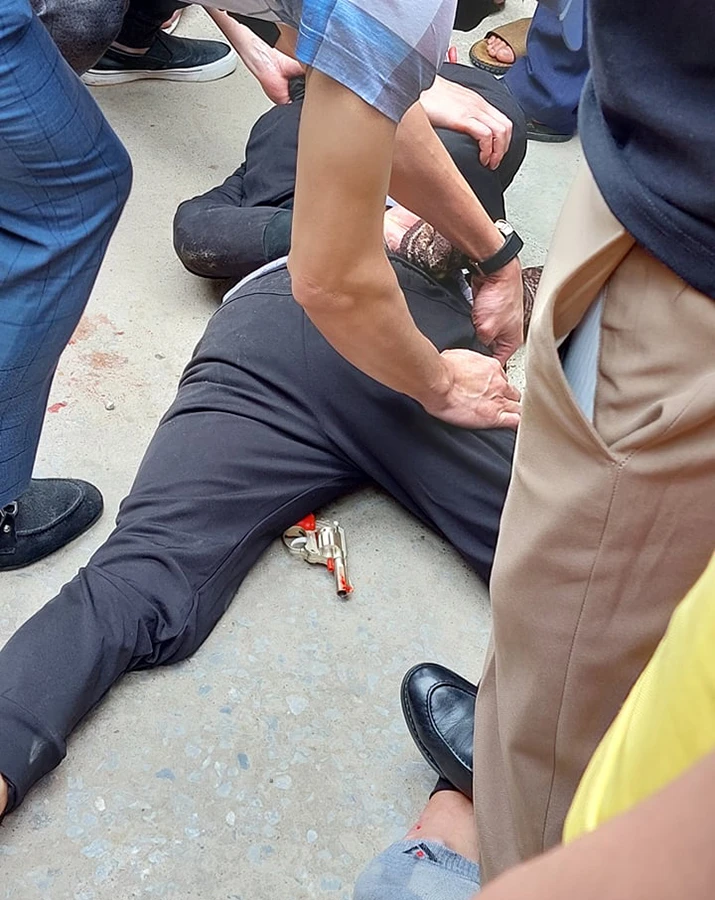 Theo người dân, nam thanh niên đã qua lại theo dõi ông bà chủ tiệm vàng, khi sở hở thì nhanh chóng ập vào sử dụng dao, súng không chế bà Loan.