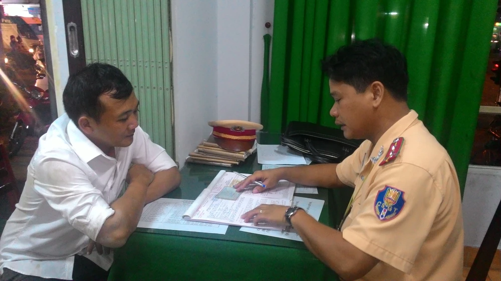 Lực lượng CSGT làm việc với Nguyên tại Công an phường Xuân Khánh