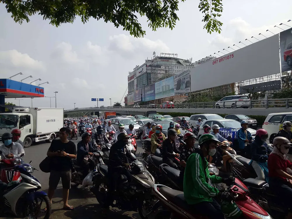 Ảnh hưởng từ vụ việc khiến giao thông qua khu vực ùn ứ nghiêm trọng. Ảnh: H.TÂM