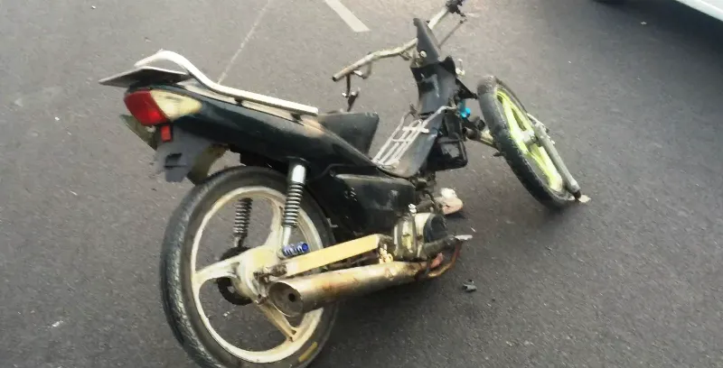 Tại hiện trường chiếc xe máy khá cũ nát, không đèn, bị tháo mất nhiều bộ phận… hư hỏng nặng sau cú tông. Xe ô tô cũng hỏng nặng phần đầu.
