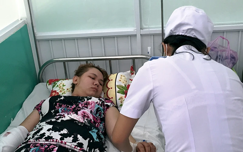 Chị Yến sau đó được đưa đi cấp cứu ở bệnh viện với vết thương nghiêm trọng ở cánh tay.