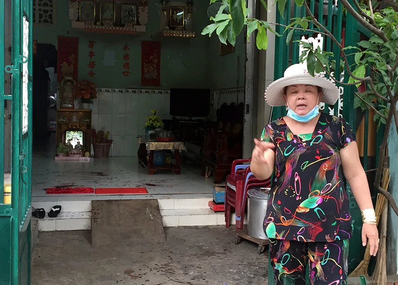 Sau đó, bà T. chỉ tay và nói: “nhà nó đó!” thì nam thanh niên được cho là con rể bà T. cầm mã tấu xông vào chém chị Yến lúc này đang đứng ở trong nhà.