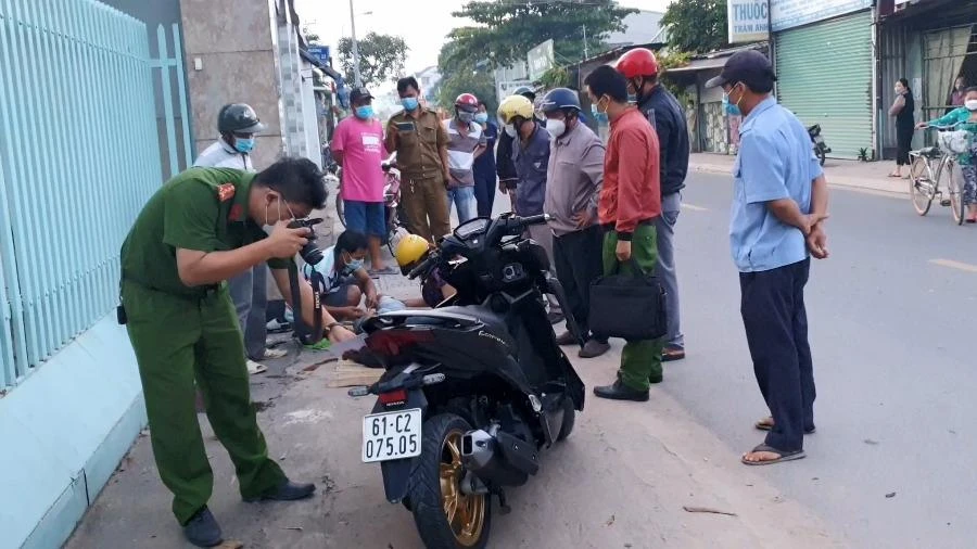 Khi đến kiểm tra, người dân phát hiện nam thanh niên tên T. (21 tuổi) đã tử vong. Chiếc xe máy 61C2-075.05 hư hỏng nặng phần đầu.