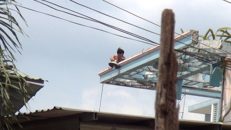 Vị trí nam thanh niên cố thủ rất cao và khá nguy hiểm.