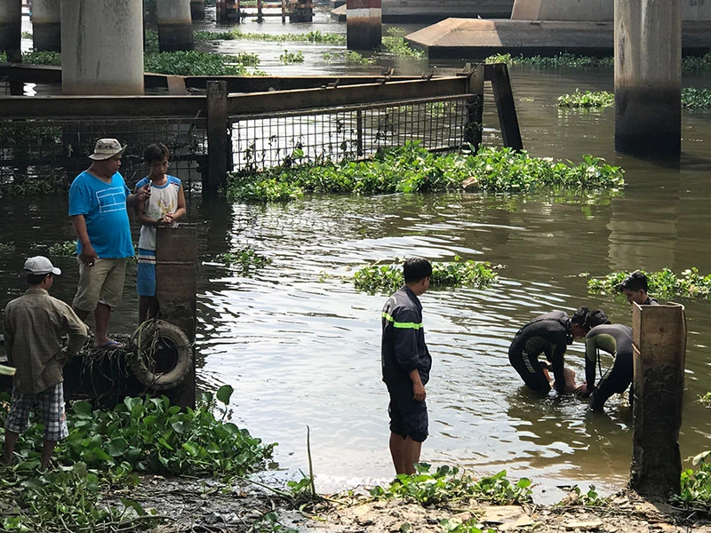 Thi thể nam thanh niên được lực lượng cứu hộ cứu nạn tìm thấy trên sông Sài Gòn.