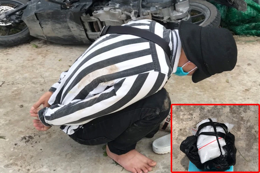Lực lượng chức năng đã thu giữ tang vật gồm: 2 túi ni lông bên trong có chứa khoảng 498 gram ma túy đá, 1 xe mô tô và một số vật dụng khác.
