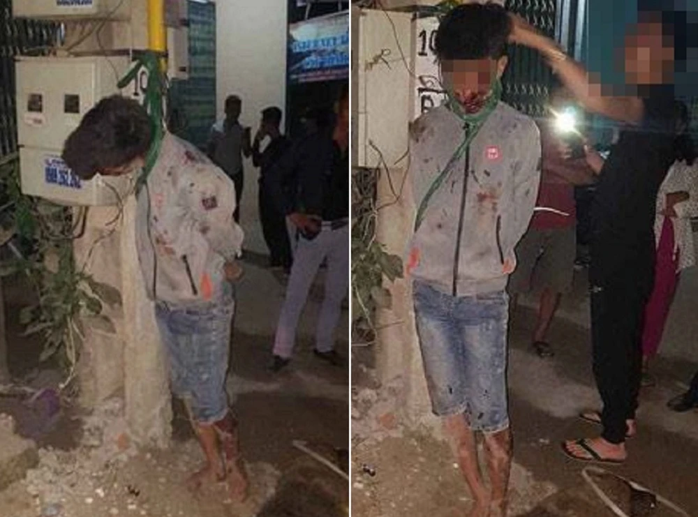 Mấy ngày nay, mạng xã hội chia sẻ hình ảnh một nam thanh niên bị trói tay, miệng bị chảy máu, đang bị treo cổ lên cột điện, cạnh đó là một con chó đã chết.