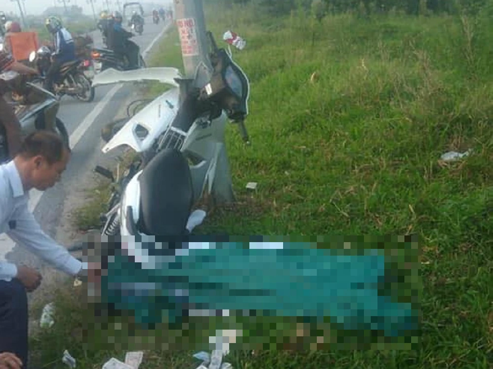 Theo người dân, vào thời điểm trên, họ lưu thông trên đường trục chính Mê Linh (theo hướng Vĩnh Phúc-Hà Nội) phát hiện chiếc xe máy nhãn hiệu Wave Alpha kẹp chặt vào cột điện, bên cạnh đó một nam thanh niên nằm bất động.