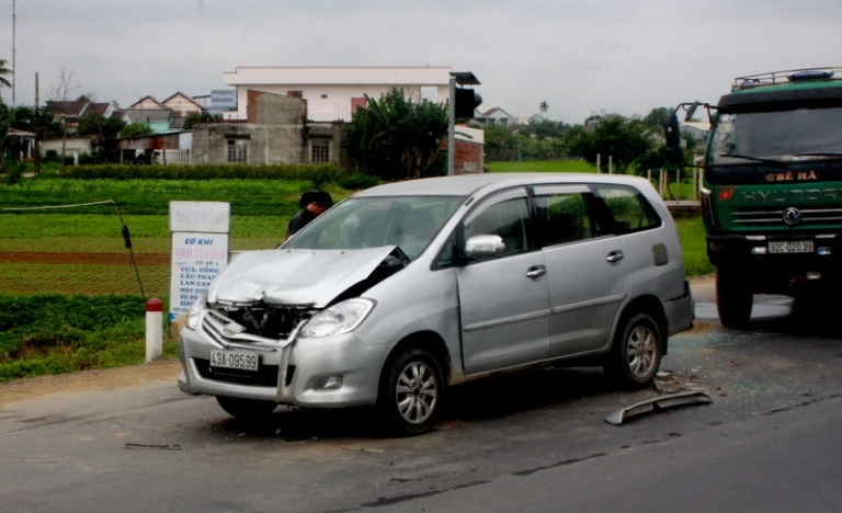 Cũng trong lúc này, một xe tải khác từ phía sau lao tới theo hướng cùng chiều, thắng gấp lại nhằm tránh va chạm với xe máy vừa ngã ra thì không may, một ô tô mang BSK 43A-095.99 do tài xế Nguyễn Quang Duy (SN 1987, trú quận Hải Châu, TP Đà Nẵng) đi phía sau bất ngờ cũng lao đến đâm vào đuôi xe tải này.
