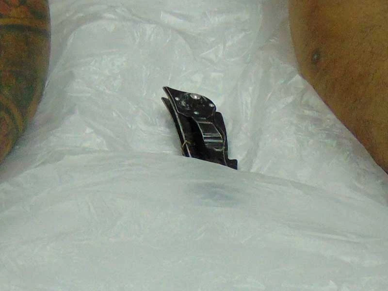 Khoảng 1 giờ ngày 2-10, một thanh niên độ 30 tuổi máu me đầy đầu, xăm trổ nửa người nằm bất động trên băng ca được điều dưỡng đẩy thẳng vô khu vực dành cho bệnh nặng. Nạn nhân lập tức được cho thở máy, đo nhịp tim, truyền dịch… Thấy túi quần nạn nhân cộm cộm, bảo vệ BV đưa tay vô và lôi ra con dao bấm sắc lạnh. “Chuyện này chúng tôi gặp hoài. Sẵn dao trong người, khi có chút rượu là hung hăng đâm chém” - anh bảo vệ nói.