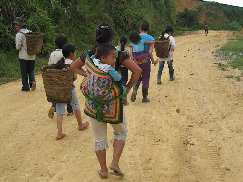 Hơn năm tiếng đồng hồ ngồi thuyền độc mộc vượt sông Giăng, cuối cùng chúng tôi cũng đến được bản Cọ Phạt, xã Môn Sơn, huyện Con Cuông. Nơi đây có tộc người Đan Lai sinh sống. Hình ảnh đầu tiên đập vào mắt chúng tôi là những mái nhà tranh vách nứa mốc thếch nằm lẩn khuất dưới tán cây rừng. Vừa bước chân đến đầu bản chúng tôi đã thấy một đoàn bé gái 13-14 tuổi đang địu trẻ con, thoắt cái đã thấy vạch áo cho… con bú.