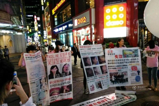 Theo Tecent, những cô gái này đã đứng trước Myeong-dong, một trong những trung tâm mua sắm nhộn nhịp nhất Seoul hai ngày nay. Trên tay cầm các áp phích in tình trạng của mình sau khi phẫu thuật thẩm mỹ hỏng. Họ hy vọng thu hút được sự chú ý của chính quyền Hàn Quốc để có biện pháp ngăn chặn người khác rơi vào tình trạng như họ.