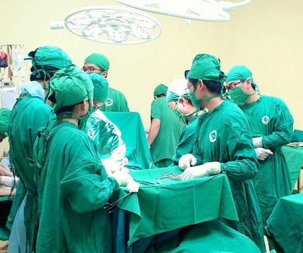 Các bác sĩ đang tập trung phẫu thuật cứu sống ông D. Ảnh: BV CUNG CẤP