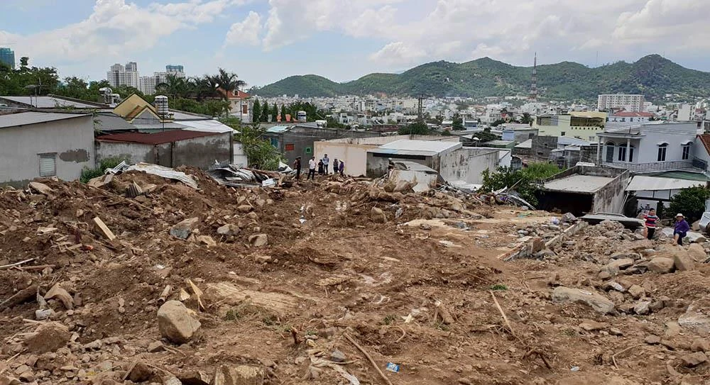 Cả khu dân cư bị san bằng sau vụ vỡ hồ. Ảnh: TẤN LỘC