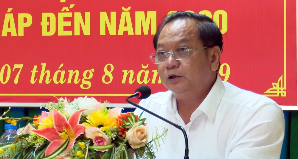 Bí thư Thành ủy TP Cần Thơ Trần Quốc Trung phát biểu tại hội nghị. Ảnh: CHÂU ANH