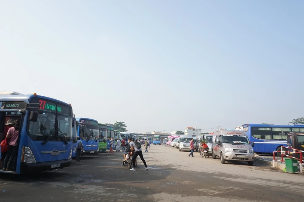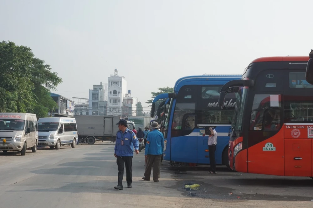 Hoạt động ở bến xe vẫn diễn ra bình thường dưới sự điều phối của lực lượng của bến xe.
