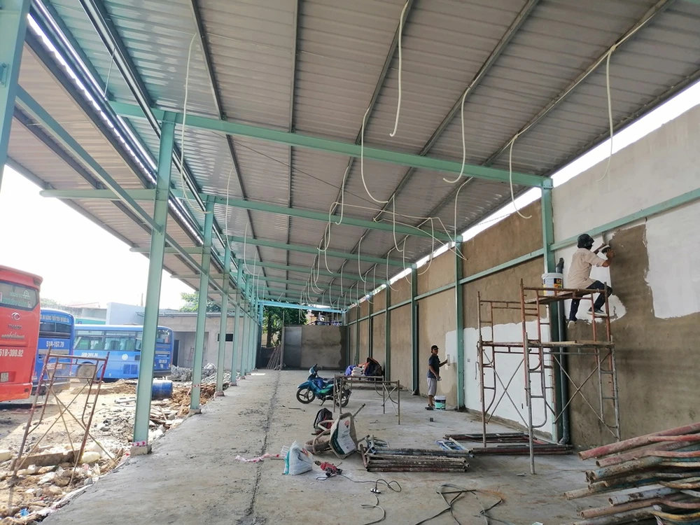 Tại bến xe có hàng chục công nhân tiến hành cải tạo không gian trong bến như nơi xe buýt đưa đón khách vào bến; khu vực bán vé và nơi khách đợi; khu vực đón khách; khu vực trả khách. Đa số những không gian trên đã xong phần sườn.