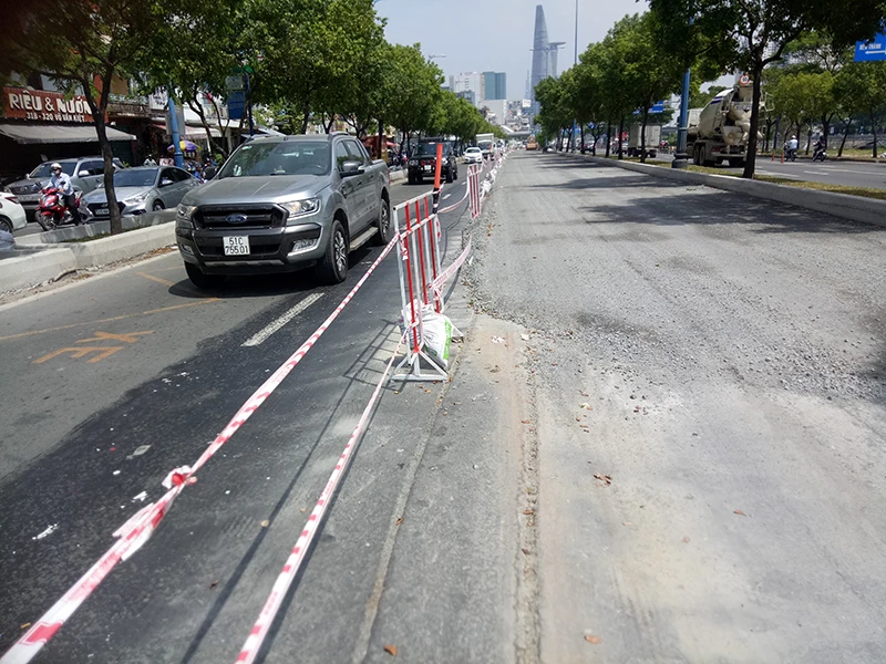 Ghi nhận thực tế ngày 6-11, khu vực đường từ Hồ Hảo Hớn về cầu Nguyễn Văn Cừ (hướng từ quận 1 đến quận 5), làn ô tô theo hướng này đang được phân đôi, một bên đơn vị thi công đã trải đá dăm để nâng đường. Việc bó vỉa hè phía gần kênh Tàu Hủ-Bến Nghé cũng đang được tháo dỡ để nâng cấp.