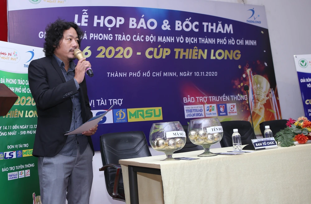 Chuyên gia bóng đá Đoàn Minh Xương phát biểu tại buổi lễ bốc thăm. Ảnh: BTC
