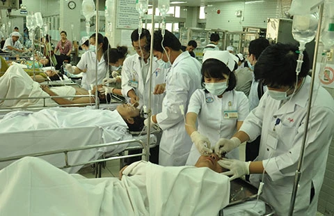 | Bệnh nhân điều trị nội trú tại BV quận/huyện tăng nhanh Theo thống kê của Sở Y tế TP.HCM năm 2014, số lượt bệnh nhân đến BV quận/huyện khám, chữa bệnh tăng từ 6% đến 36% so với năm 2013 (tùy mỗi BV quận, huyện nhưng tăng nhiều nhất là BV quận Bình Tân). Trong đó, số lượt khám cho trẻ em dưới sáu tuổi cũng tăng từ 9% đến 35% (tăng nhiều nhất là BV quận 2). Số bệnh nhân điều trị nội trú tại các BV quận/huyện tăng từ 5% lên đến 201% so với 2013. Trong đó, bệnh nhân khoa Nhi nội trú tăng 198% so với năm 2013 (BV quận Tân Phú). Công suất sử dụng giường bệnh tuyến TP giảm dần Các BV quận/huyện đã nỗ lực nâng cao chất lượng, thu hút bệnh nhân nhưng chủ yếu là bệnh nhân cư trú ở TP.HCM. Trong khi đó, bệnh nhân của các tỉnh về TP khám, chữa bệnh chiếm 40%-50% nên số lượng bệnh nhân khám, chữa bệnh ở các BV tuyến TP có giảm nhưng chưa nhiều. Dưới đây là số liệu công suất sử dụng giường bệnh tại vài BV tuyến TP: