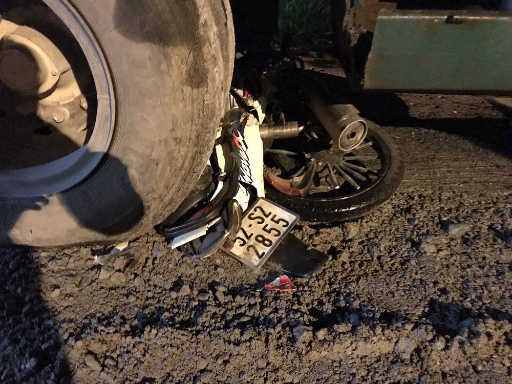 Hậu quả của vụ việc khiến nạn nhân và xe máy mắc kẹt dưới bánh xe container...