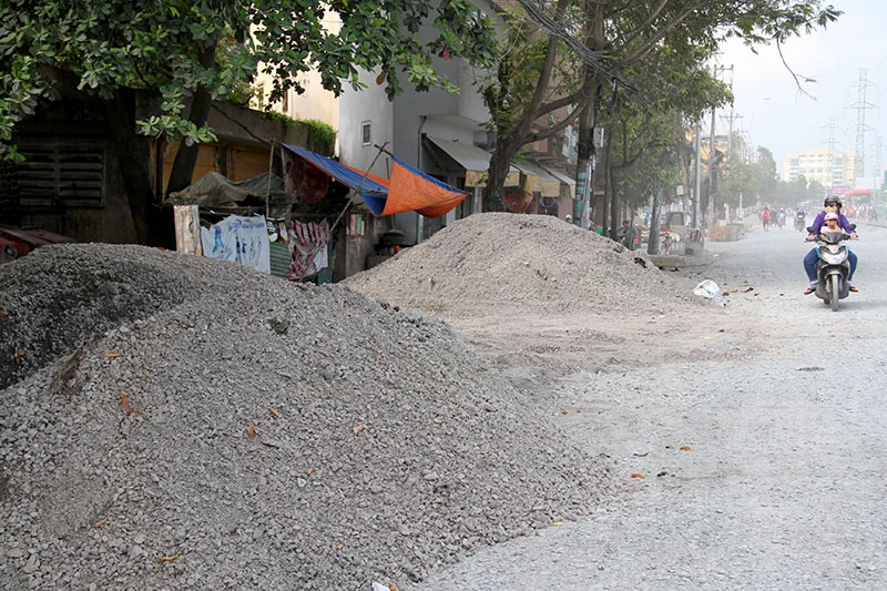 Nhiều khu vực còn chưa trải xong đá. (Ảnh chụp ngày 25-9). Ảnh: LÊ THOA