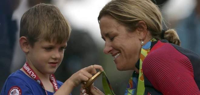 Chiếc HCV Olympic thứ 2 khi cậu con trai Lucas mới 2 tuổi.