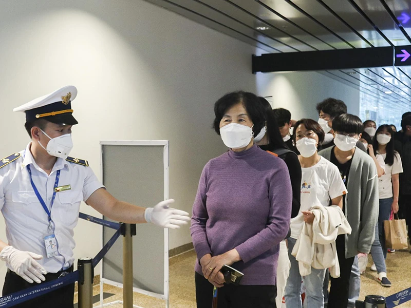 Kiểm tra sức khỏe hành khách tại sân bay quốc tế Cam Ranh. Ảnh: PV