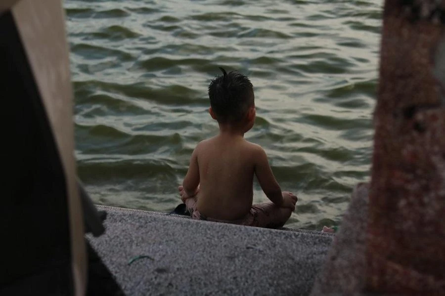 Cuối buổi chiều, nhiều người bao gồm cả người lớn và trẻ nhỏ tập trung tại hồ Tây để tắm mát. Đây là địa điểm giải nhiệt yêu thích của những đứa trẻ.