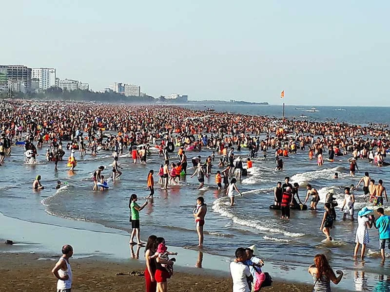 Người dân đổ về TP biển Sầm Sơn, Thanh Hóa trốn nắng nóng đạt con số kỷ lục. Ảnh: ĐẶNG TRUNG