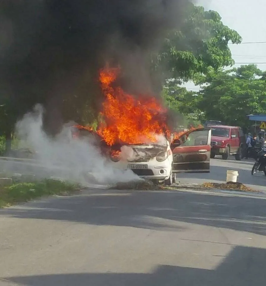 Chiếc xe taxi mang biển số 15A-030.74 của hãng taxi Việt Anh (có địa chỉ tại huyện Thủy Nguyên, TP Hải Phòng) chở theo bốn hành khách, trong đó có hai cháu nhỏ di chuyển theo hướng từ huyện Vĩnh Bảo về huyện Tiên Lãng. Khi đi đến trước cửa UBND xã Hòa Bình bỗng nhiên xe bốc cháy dữ dội.