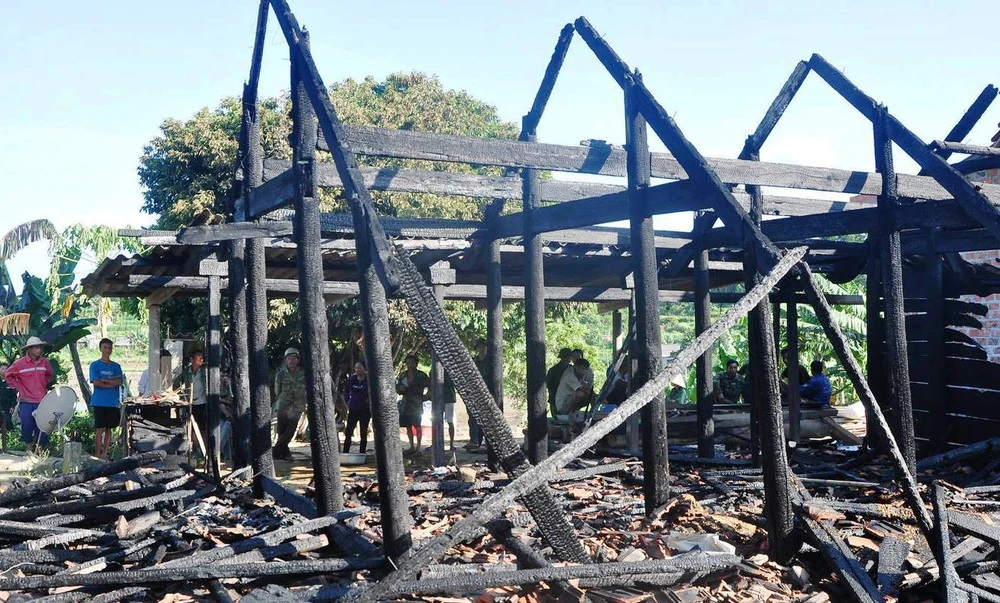 Ngôi nhà của vợ chồng ông Nguyễn Xuân Minh cháy rụi hoàn toàn. Ảnh: Minh Lý