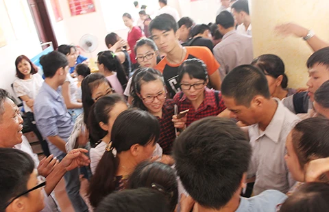“Cả đêm hôm qua hai cha con thao thức sợ điểm đẩy lên cao sẽ mất cơ hội vào ngành kinh tế, vì vậy tôi đi sớm để theo dõi số thí sinh đến nộp điểm cao nhiều không rồi mới tính chuyện nộp hồ sơ vào. Nay nộp rồi nhưng vẫn thấy hồi hộp vì lỡ đến chiều điểm tiếp tục nhảy vọt nữa thì không kịp trở tay” - anh Lâm phân trần.