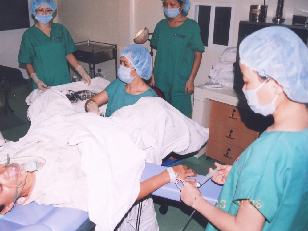 Các bác sĩ đang xử lý một sản phụ bị vỡ tử cung. Ảnh: TRẦN NGỌC