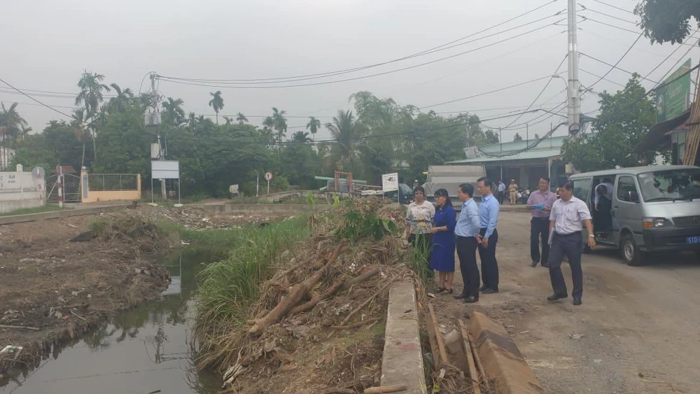 Đoàn đại biểu HĐND TP.HCM đang thị sát một số tuyến kênh rạch ở quận 12. Ảnh: NGUYỄN CHÂU