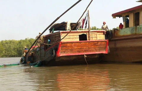 Cũng theo người dân thì DN Nhân Thiện Hòa được cấp phép để thực hiện nạo vét, thông luồng đoạn sông này nhưng thực chất là chỉ hút cát đem bán mà thôi. Bởi hằng ngày họ đưa xáng cạp chạy trên sông kiểm tra vị trí nào có cát thì cho sà lan và tàu tự hành đến hút cát. Còn vị trí nào chỉ có bùn mà không có cát thì không can thiệp. Thậm chí sà lan và tàu tự hành còn cho thọc vòi sâu sát bờ sông để hút cát. Các phương tiện còn thực hiện việc hút cát ngay cả khu vực gần các bè nuôi cá, bè nuôi hàu của người dân. Người dân ngăn cản thì các tàu, sà lan hút cát vào ban đêm.
