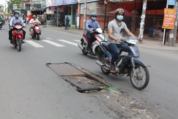 Quan sát, nắp cống này có nguy cơ sụp xuống bất cứ lúc nào. Điều đáng nói, trước khu vực nắp cống vỡ không hề có một bảng cảnh báo nguy hiểm cho người dân. Nhiều người đã phải gặp một phen hoảng hốt khi vô tình lái xe cán ngang nắp cống trên. Cá biệt, một số người thiếu ý thức còn mang rác thải là bao ni lông xả ngay trên mặt nắp cống.