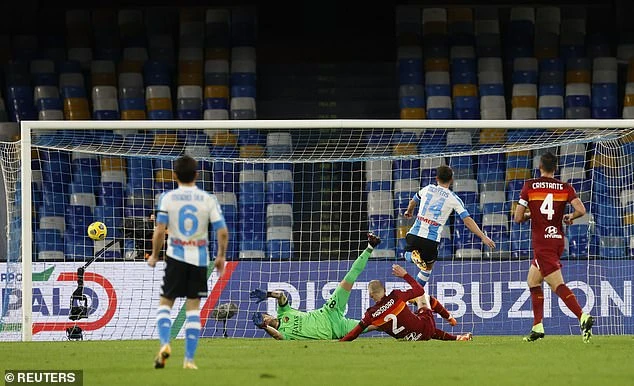 Nhưng trong pha bóng này, người gác đền của Roma lại không thể ôm gọn bóng để cho Mertens băng vào dứt điểm cận thành nâng tỷ số lên thành 3-0.